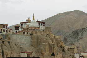 לבסוף החלטנו שאין למה לחכות כי הטפטוף נמשך אך לא היה חזק, ויצאנו לעבר המנזר העתיק מהמאה האחת עשרה, שהוא האטרקציה המרכזית בכפר, מלבד היותו נקודת יציאה לטרקים. העליה התלולה לא הייתה קשה והתפתלה בין הבתים ואחר בין סטופות עתיקות וחרבות, שעדיין אפשר לראות את עיטורי האבן העתיקים על חלקן. הגענו למקדש היפה והגדול, שהזכיר לנו את המקדשים בדהארמסלה ובסיקים והיה שמור היטב ומקושט בציורים הצבעוניים הטיפוסיים לטיבטים, למרות שזהו מקדש לאדאקי טיפוסי, והם אינם מגדירים את עצמם כטיבטים.