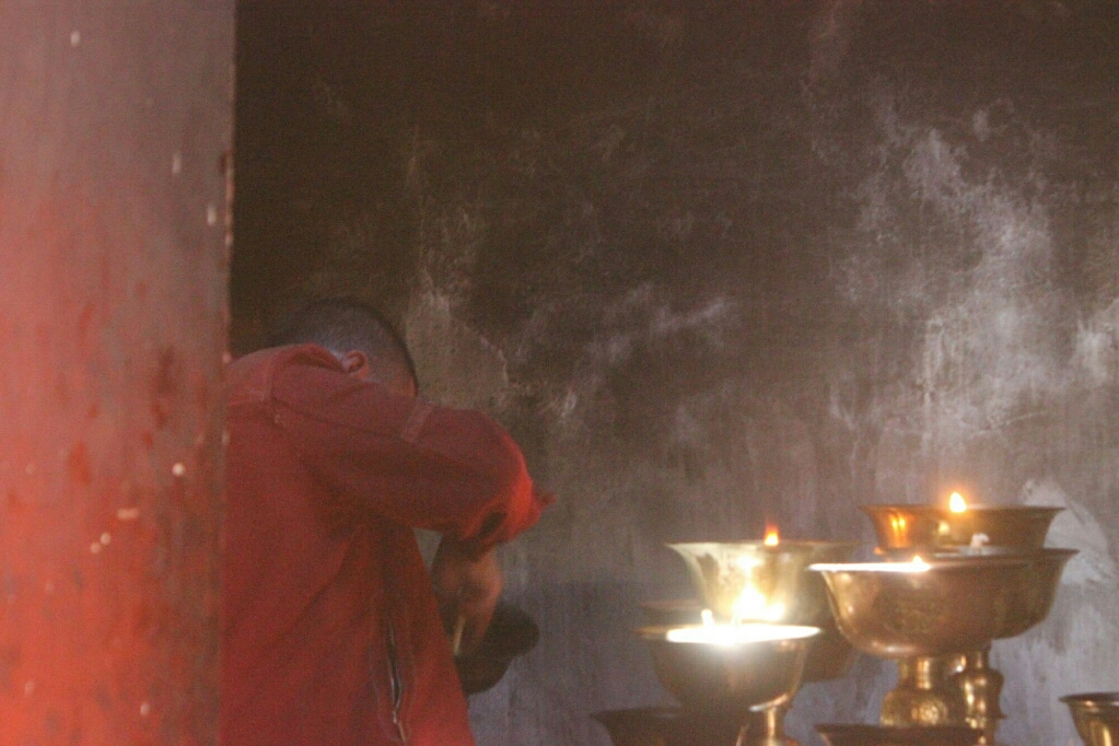 המנזר עצמו קטן ומסודר, עם שני מקדשים קטנים שבאחד מהם ישבנו כמובן לעשות מדיטציה, ובעצם מהווה בעיקר מקום לנזירים שרוצים לעשות ריטריט מסורתי של שלוש שנים, שלושה חודשים ושלוש שבועת ושלושה ימים. הם נמצאים בחדרים קטנים מבודדים, והנזירים במקדש רק שמים ליד החדר את האוכל, והם אינם רואים אנשים כל הזמן הזה, אינם מתרחצים, מסתפרים או קוצצים את הציפורניים. מי שרוצה לראות איך הם נראים כשהם גומרים את הריטריט הזה שיחפש את הסרט סמסרה, וזאת ממש הסצינה הראשונה. אחר כך אכלנו ארוחת צהריים שלקחנו אתנו וויווק סיפר קצת על הזרמים השונים והשוני ביניהם.