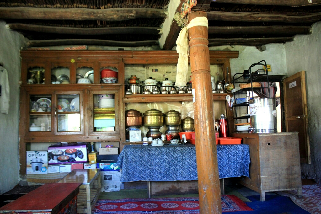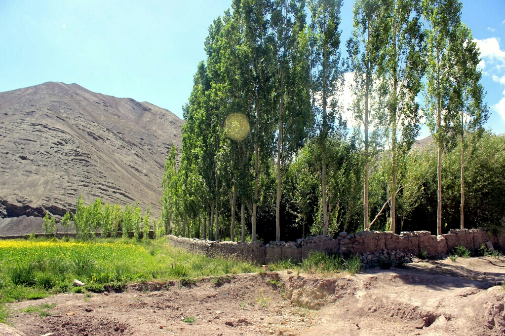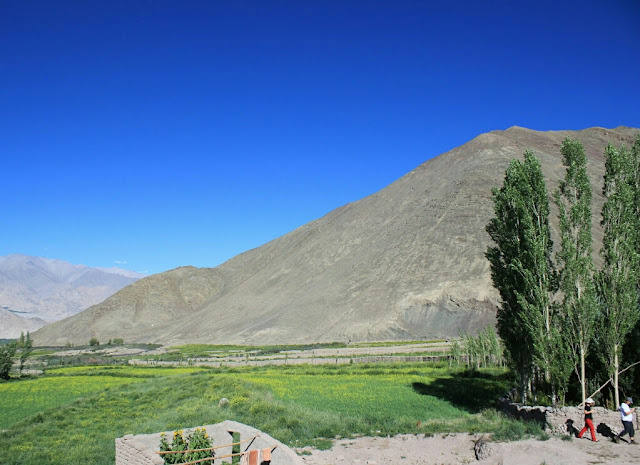 אחר צהריים אחד הלכנו ברגל בכפר ועלינו למקדש הגדול והחדש, שלידו הוקם פסל בודהה מוזהב גדול שבקרוב ייחנך על ידי הדאלאי לאמה. המקדש הגדול והחדש היה פחות מרשים מההליכה ברחובות הכפר, ולפעמים יותר נכון לומר: משעולי הכפר הצרים בין חומות אבני חימר גבוהות וצמוד לתעלת המים הצלולים. רוב הבתים הכפר בנויים בסגנון הלאדאקי המסורתי, בניין מסוייד בלבן בדרך כלל בעל שתי קומות, עם חלונות עץ רבים צבועים באדום כהה, ולידו גינת ירק ואחריה שדות חרדל ואלפלפה מגודרים גם כן בגדרות חימר גסות. אבל כמה בתים נבנו כבר בסגנון מודרני, יותר נכון בסגנון שמזכיר את בתי הפאר בסרטי בוליווד, ואין לידם שדות או גינה. יש גסטהאוז אחד והומסטאיי אחד והרחובות מתפתלים ועולים במדרון לעבר המנזר שמעליו מתנוסס פסל הבודהה והמקדש. הכפר באמת מדהים ביופיו: בתים ולידם עצים גדולים וגינות ירוקות, ושקט מופלא שקשה לתאר אותו.