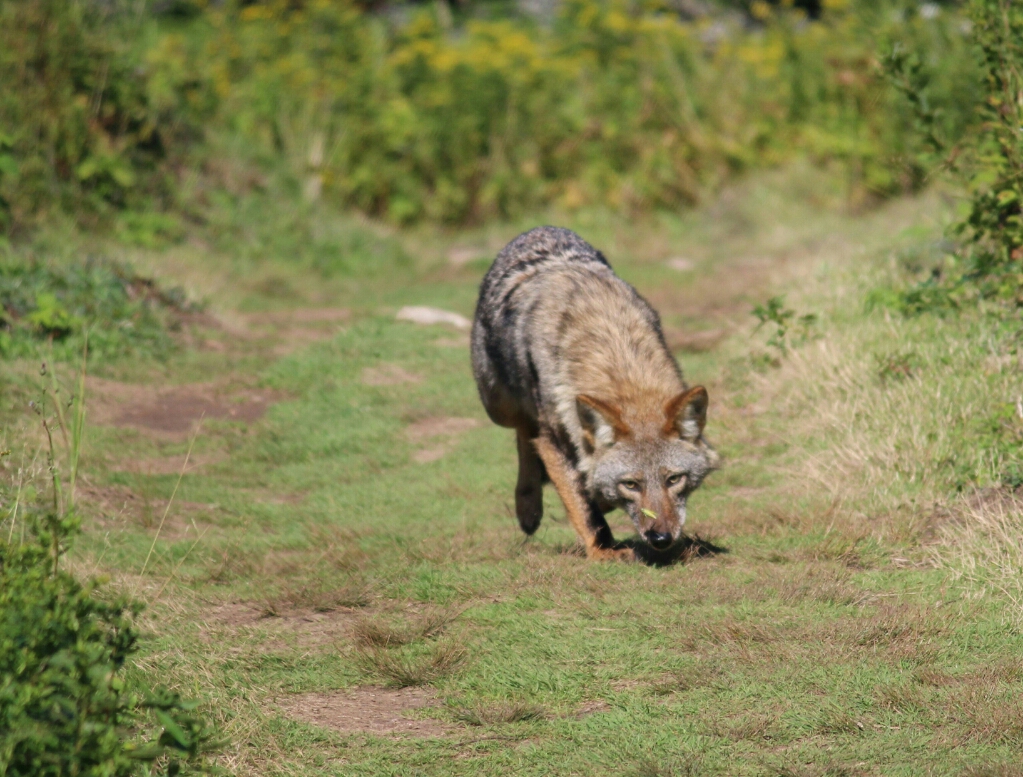 שתי בחורות נחמדות שהלכו לפנינו בשביל עצרו לפתע וסימנו לנו לעבור אותן כדי לראות - קויוט, אותו זאב עם פני שועל שהזהירו מפניו בכניסה! הוא עצר לרחרח בין השיחים לצד הדרך ואחר כך המשיך ללכת באדישות כשאנו עוקבים אחריו בזהירות והוא מדי פעם נעלם בעיקול, ואז מופיע שוב כשהוא נעצר לרחרח שוב בעשבים או בשיחים. כך זה נמשך כרבע שעה עד שהוא נעלם, כנראה ירד מהשביל עליו הלכנו.
