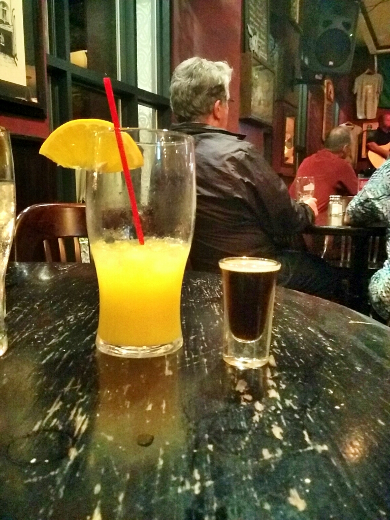 [אפי] ביקשתי מהמלצרית מיץ תפוזים לאתי, ובשבילי בירה גיניס בכוס הכי קטנה שיש להם.זה מה שהיא הביאה.