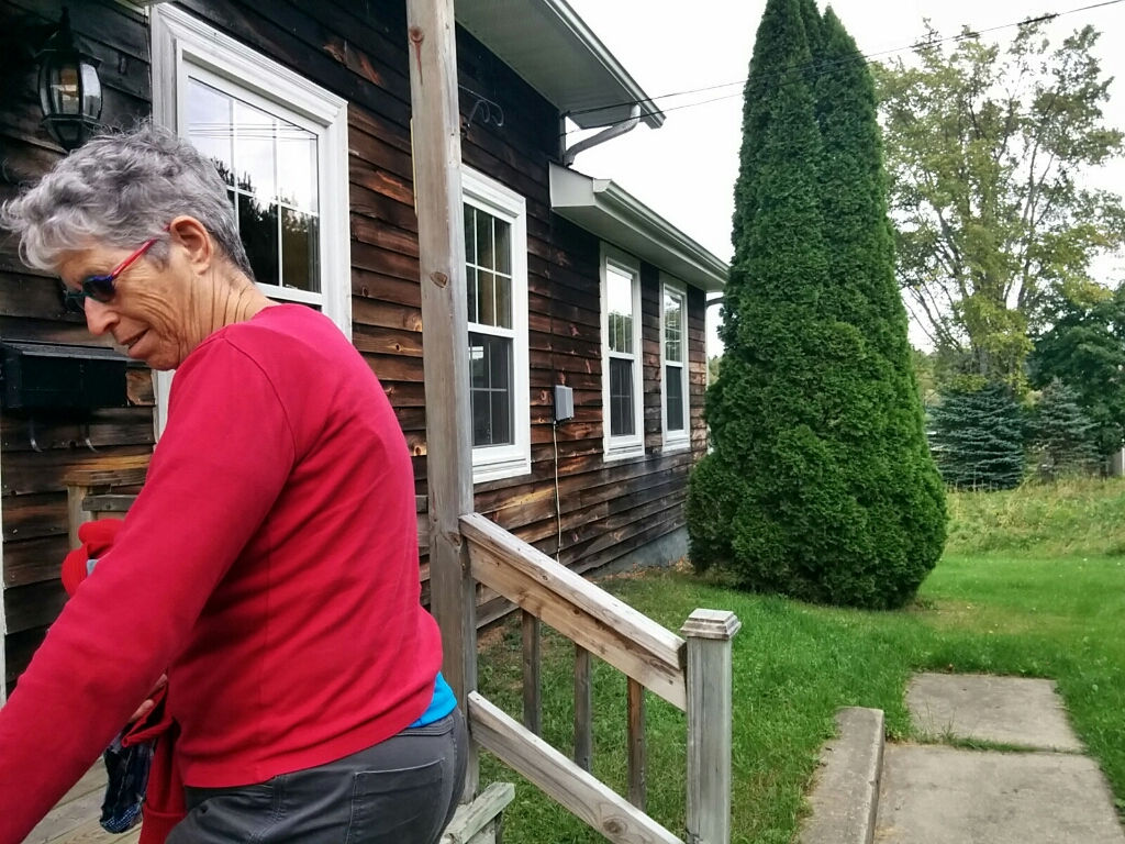 התחלנו בנסיעה של כשלוש מאות קילומטרים, שכחצי מהם היו על דרך מהירה ומשעממת במיוחד, שירדנו ממנה ברגע שיכולנו לדרך קטנה. הדרך המשנית הייתה הרבה יותר נעימה עם כפרים קטנים ויפים ועיירות מנומנמות בלי הרבה פעילות. אבל היה מעונן וקר ואי אפשר היה לשבת בחוץ ולאכול ואחרי הצהריים כבר היינו מותשים ומדוכאים ועצרנו בעיר גדולה שנקראת רימואסקי שם חיפשנו מוטל או משהו דומה. אני הייתי כל כך עייפה ונוקשה מהישיבה הממושכת שהייתי מוכנה להתפשר על מוטל סתמי בלב איזור תעשיה משמים. אבל אפי לחץ להמשיך לחפש משהו יותר סימפטי דווקא בגלל שהיה די מוקדם. כמו שקורה הרבה פעמים, גם הפעם אפי צדק. על הכביש ראינו שלט קטן: chalets ומיד נזכרנו בבקתות נופש דומות שבהן ישנו בניו אינגלנד. נכנסנו למשרד והבחורה הצעירה גמגמה וסימנה עם ידיה שזה משהו קטן מאוד ״פטיט״ אבל לא התרשמנו ורצינו לראות. מצאנו בית שנראה כמו בית של אנשי לגו קטנים אבל היה בו הכל: מיטה, שולחן אוכל וכל הציוד לבישול כולל תנור אפיה וכיריים חשמליות וטוסטר ומקרר ומיקרו... השירותים היו מזעריים אך נקיים ומודרניים ומהחלונות נשקף היער שבתוכו שכנו הבקתות ממש מעל הים. התלהבנו והחלטנו לקנות מוצרים גם לארוחת ערב ובוקר למחרת, אחרי שהרגשנו שבימים האחרונים אנחנו די נאבקים לאכול אוכל צמחוני, ואני עוד מנסה שיהיה פחות או יותר בלי מוצרי חלב... בשורת הצמחונות והטבעונות לא הגיעה עדיין למחוז קוויבק, ולא מצאנו מסעדות הודיות או סיניות בדרכנו, כאלה שבמקומות אחרים בעולם מצילות אותנו מהבעיה הקולינרית שלנו...