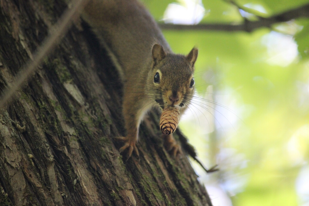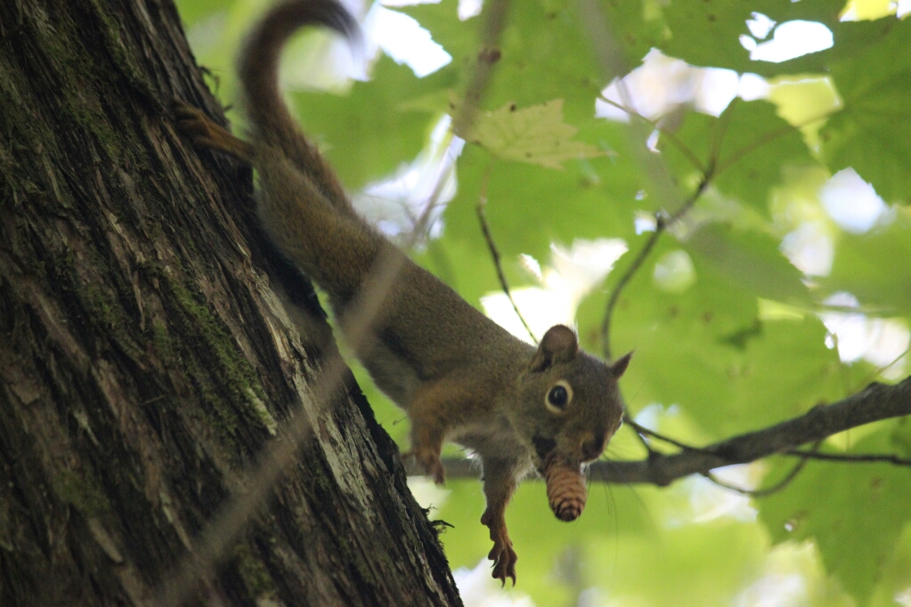 אבל היום השני תיקן את כל מה שהתקלקל ביום הראשון. השמש זרחה אבל לא היה חם והיה אפילו קצת קריר. נסענו לקצה הרחוק יותר של הפרק והגענו לנקודה שבה התחיל מסלול ההליכה שבחרנו, שני מסלולים מעגליים שמתחברים באורך של עשרה קילומטרים בערך. היער היה סבוך מאוד, וכמעט כל הזמן היינו בצל או כמעט בצל כשרק קרני שמש בודדות חודרות ומאירות. ראינו ציפורים, סנאים, ופטריות והכל בצילומים של אפי. אבל אני לא בטוחה שתחושת ״כיפה אדומה הולכת לבדה ביער ותכף יבוא הזאב״ ניתנת להעברה בצילומים...