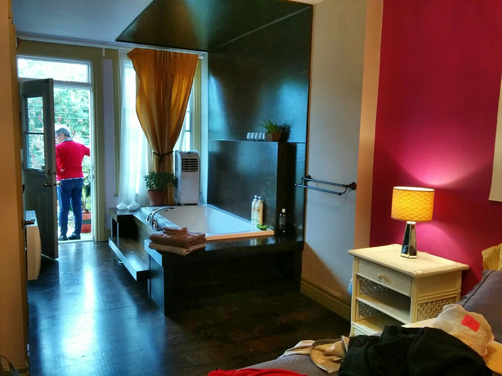 נסיעה לא ארוכה על הדרך המהירה למונטראול הביאה אותנו לאייר בי אן בי שהזמנו יומיים קודם. בית ישן ומסוגנן, עם גרם מעלות פנימי צר ומתפתל מעץ. החדר גדול ובתוכו שוכנת אמבטיה מפוארת הממלאת חצי מהחדר, והשירותים בנויים גם הם באמצע החדר כשהחלון הפתוח שלהם פונה לשולחן כתיבה נחמד... (לפחות יש שם ונטה...) ויש המון מקום לכל הדברים שלנו, שהפעם הוצאנו מהמכונית לקראת הטיסה לוושינגטון בעוד שלושה ימים. בכלל אין מה להתלונן, החדר עולה חמישים דולר ללילה ונמצא במקום מרכזי מאוד, ויש קומקום וכוסות ומקרר ואפשר להשתמש במטבח ובמכונת הכביסה המשותפים לבעלי הבית ולשאר הדיירים.