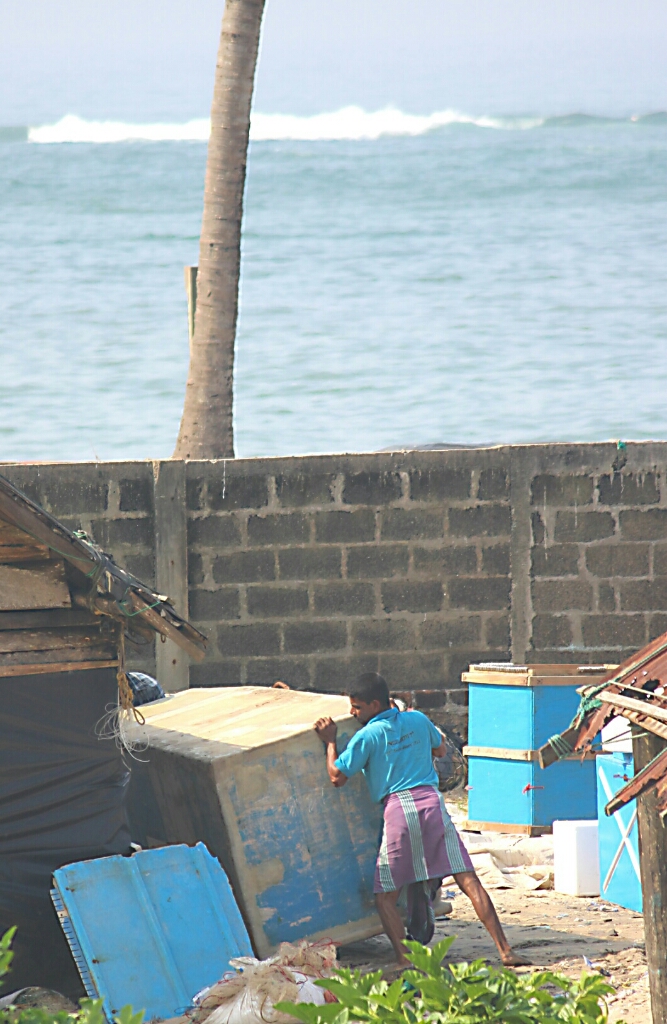 מהמרפסת ראינו דייגים מוסלמים עם הכובעים המסורתיים, ועל החוף היו שתי סירות טאמרן שבהם הדייגים יוצאים לשים את הרשתות בלילה.
