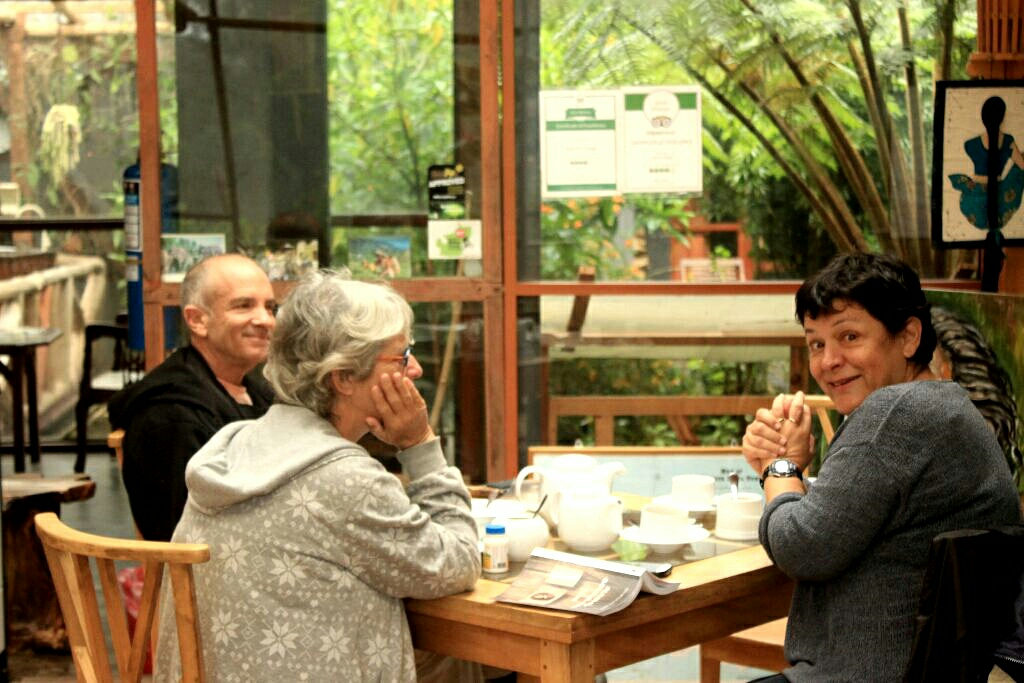 עצרנו בבית תה מפונפן שנמצא בדיוק בפינה בה הופכת דרך העפר לכביש, ושתינו תה סרילנקאי משובח ושוחחנו על הרבה דברים. קורינה סיפרה שהיא אוסטרית וסטודנטית למערכות מידע גיאוגרפיות ואנחנו סיפרנו על בננו העוסק בדברים דומים והיא סיפרה על הלימודים ועל התקופה שבה עבדה בשיווק תיירות ולא הרוויחה הרבה.