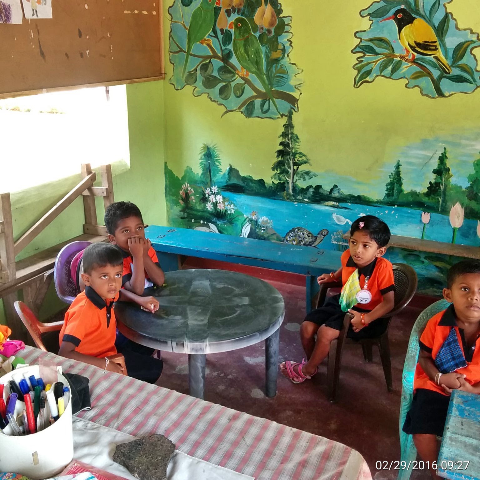 בבוקר שמענו שירה שנשמעה כמו תפילה,ושאלנו את איש המלון הנחמד מה זה, והוא הסביר שליד המלון יש בית ספר בשיטת מונטוסורי, שאת הילדים שלו ראינו משחקים בחצר. אחרי הארוחה ניגשנו לבית הקטן עם החצר הנקייה, בה היו מתקני משחקים צבעוניים. המורה נפנפה לנו והזמינה אותנו להיכנס. היו שם שמונה ילדים בני חמש, בתלבושת אחידה של חולצות כתומות ומכנסיים כחולים, שולחנות וכיסאות קטנים, לוח, והמון תמונות ואותיות צבעוניות שקישטו את הקירות. המורה הסבירה שיש בכיתה עשרה תלמידים ושניים לא הגיעו, ושכל אחד משלם 800 רופי לחודש. האנגלית שלה לא הייתה מרשימה, ואינני יודעת כמה היא לימדה אותם את השפה.