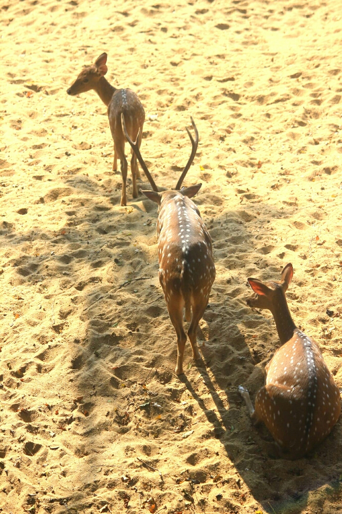 בעלייה התלולה למקדש הנהג הסב את תשומת לבנו לכמה צבאים יפים שעמדו ממש מתחתינו, והסביר שאלה הצבאים של המקדש, ומאכילים אותם מהמנחות שמביאים למקדש, והם לא פוחדים מאנשים. הם היו יפים ושלווים והיו שם אמהות ועופרים חמודים.