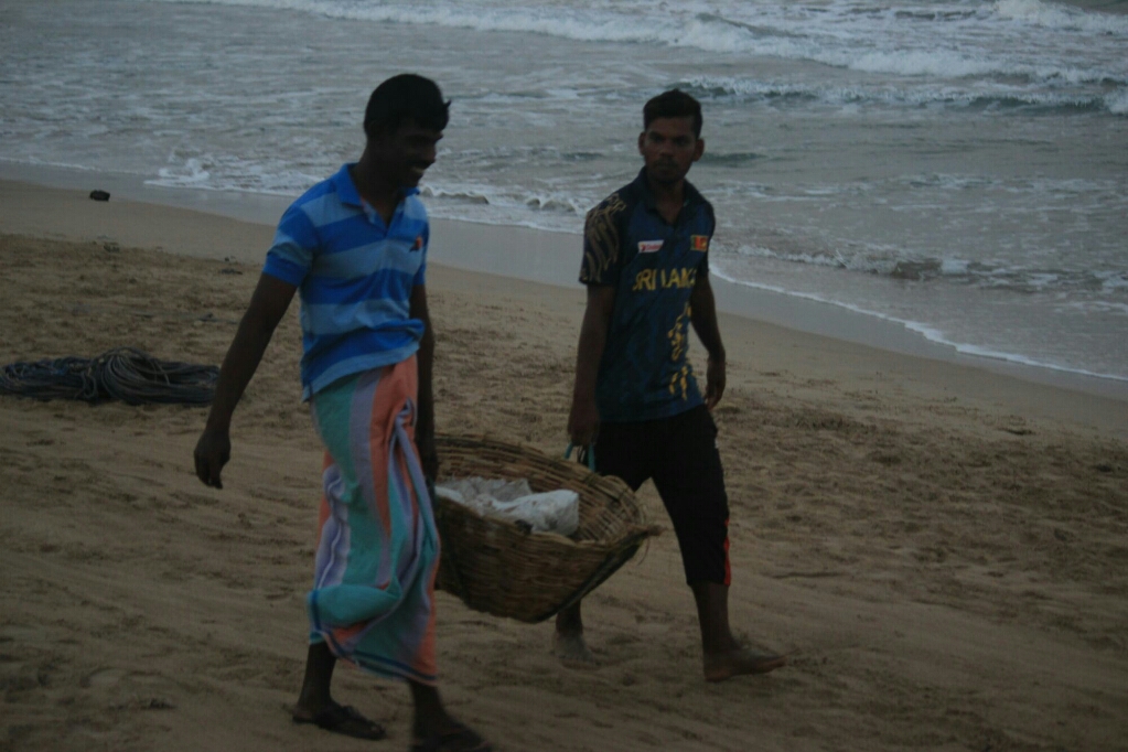 חזרנו למלון כי התחיל להחשיך והנהג חשש שלא נהיה מרוצים מפני שלא עברו שלוש שעות, אז הרגענו אותו שנהנינו מאוד, נתנו לו טיפ בזכות ההסברים באנגלית והזמנו אותו לקחת אותנו לתחנת האוטובוס לקנדי כשניסע לשם, מחרתיים. ירדנו לחוף לראות אם יש עוד משהו מהשקיעה, וראינו דייגים סוחבים רשתות ענקיות לסירות שלידינו ומניחים אותן בתוכן, כנראה לקראת יציאה לים בלילה.