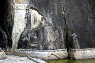 ואז ביקשנו מהנהג לחזור ליד המקום בו היינו יום קודם, למקדש הבנוי על הסלע הענק, כי מולו, קצת הלאה בכביש יש מערות בתוך סלעים שחיו בהן נזירים. מנהל המלון הנמרץ שאל אותנו כשחזרנו יום קודם אם היינו שם והמליץ לעשות זאת למחרת. זה היה באמת מרשים: הסלעים הענקיים יצרו מבנים מעניינים ואפשר היה להשקיף על כל הסביבה הרחוקה שבתוכה בצבצו המקדשים הגדולים של ״קרית המקדשים״, והמערות הגדולות היו קרירות וחבויות בלב הסלעים.