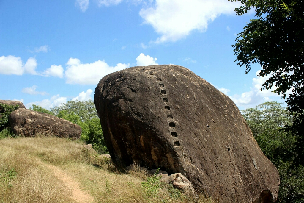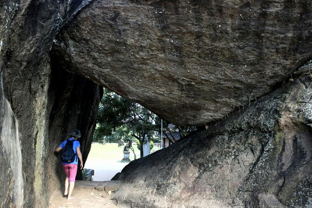 המקדש הראשון היה בנוי על סלע בזלת ענקי, ואפשר היה לעלות על הסלע ולהשקיף על הסביבה היפה. היו שם גם שני חדרים גדולים שבאחד מהם היו שרידים עתיקים וכותרות עמודים וכיסא מלכות, ובשני היה פסל בודהה שוכב בצבעים הינדיים טיפוסיים, כלומר אדום וירוק ילדותי. הסלע היה באמת עצום ויצר מין מערה בתוכו והנוף מסביב היה ירוק משובץ במקדשים העתיקים ובסטופות של ׳קרית העתיקות׳ הגדולה של אנוראדאפורה.