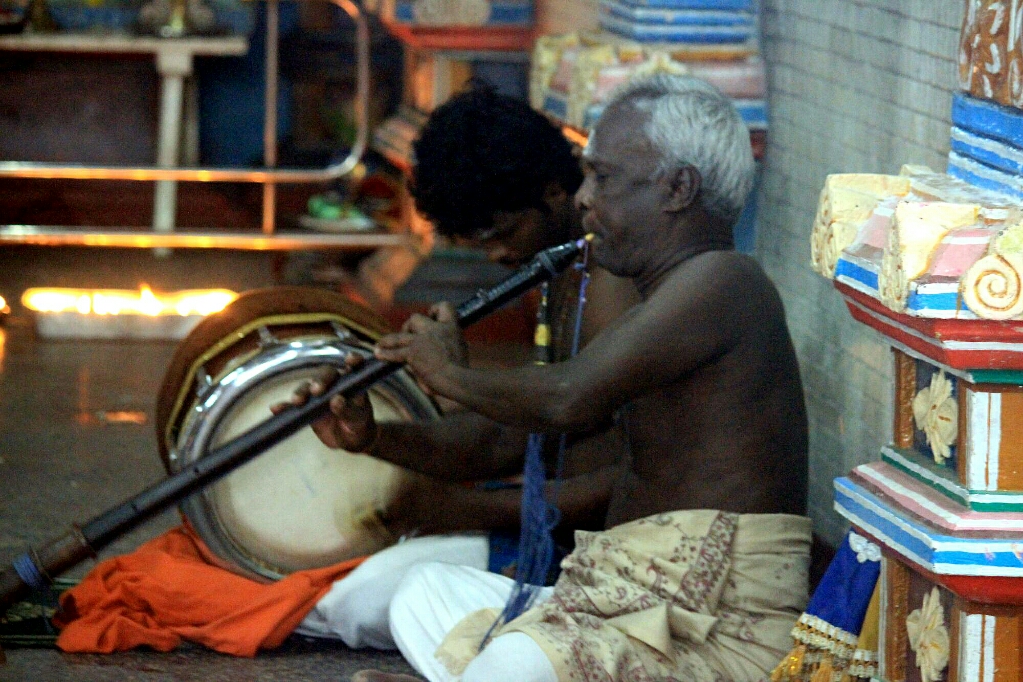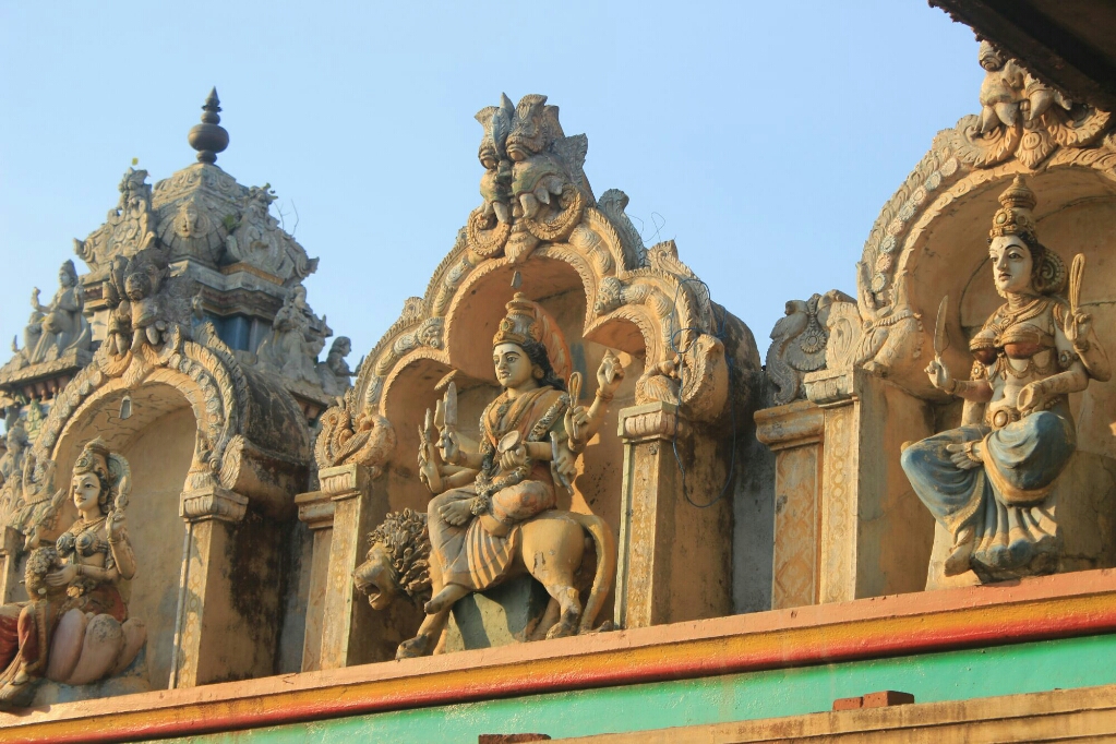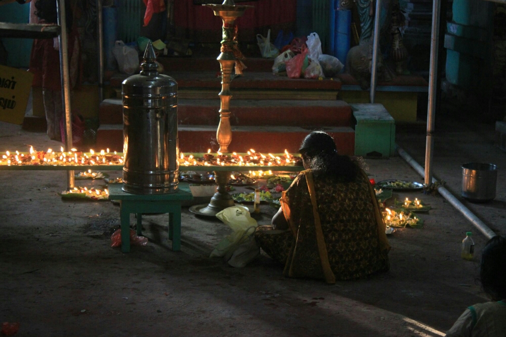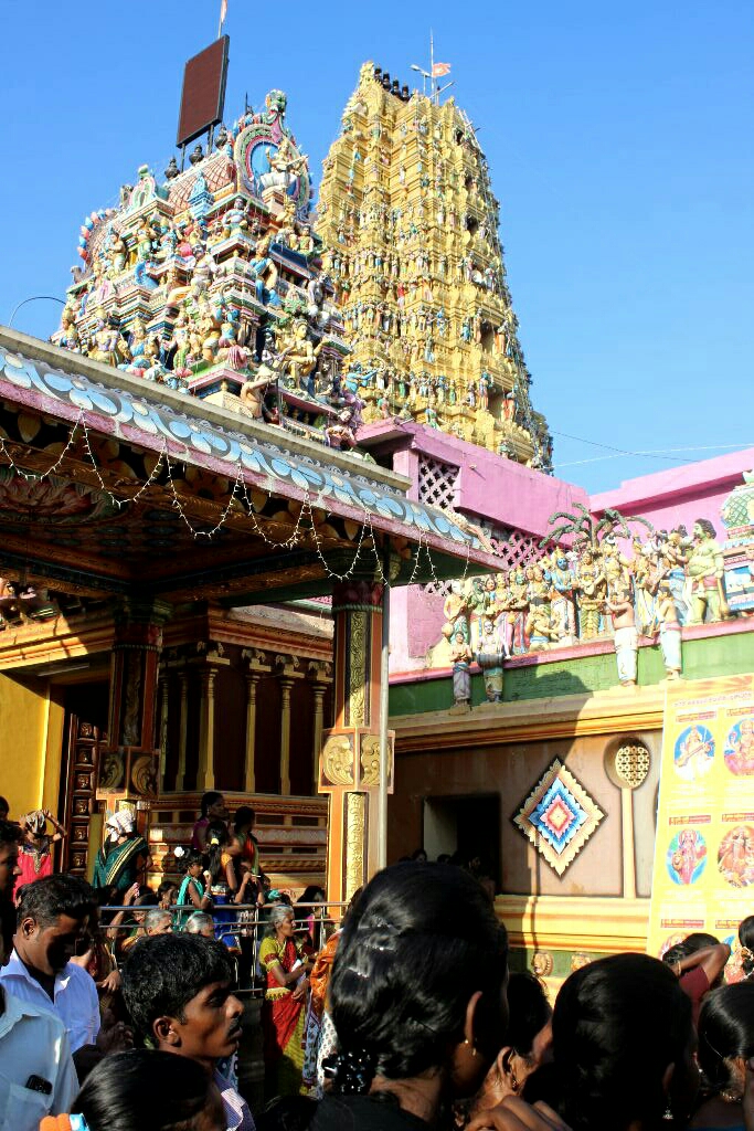 הנהג, טמילי שמשפחתו נמצאת במטלה, הוביל אותנו לעוד מקדשים יפים מאוד, כולם פעילים ובכולם היו אנשים שהדליקו קטורת ונתנו מנחות, ואחד, שהצבעים שלו דהו והוא נראה אפור, היה מוקף בפיגומים לקראת צביעה בחוץ ובפנים.