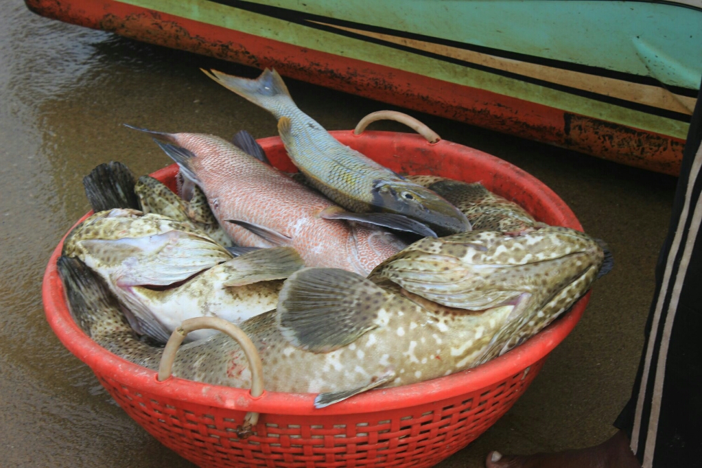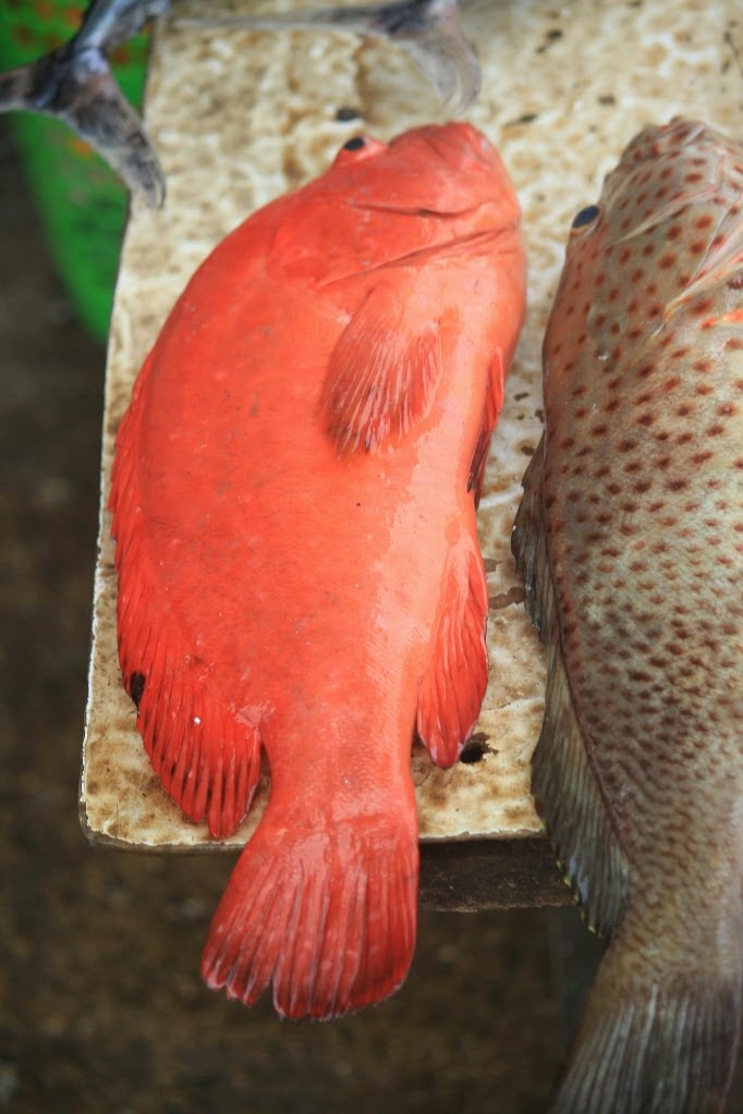 ואכן, בבוקר נסענו לעיר, השארנו את התיק לתיקון אצל מין סנדלר, וביקשנו מנהג הטוקטוק שיקח אותו מהתיקון אחרי שיביא אותנו לשוק הדגים. השוק הענק, משתרע על רחבה גדולה מאוד ממש ליד הים, עם דוכנים מכוסים שעליהם מונחים דגים מכל הסוגים ובכל הגדלים, מסרדינים קטנים ושרימפסים קטנטנים, ועד לחלקי דגי טונה בשרניים, צלופחים, כרישים צעירים, ועוד דגים בכל הצבעים והדגמים.