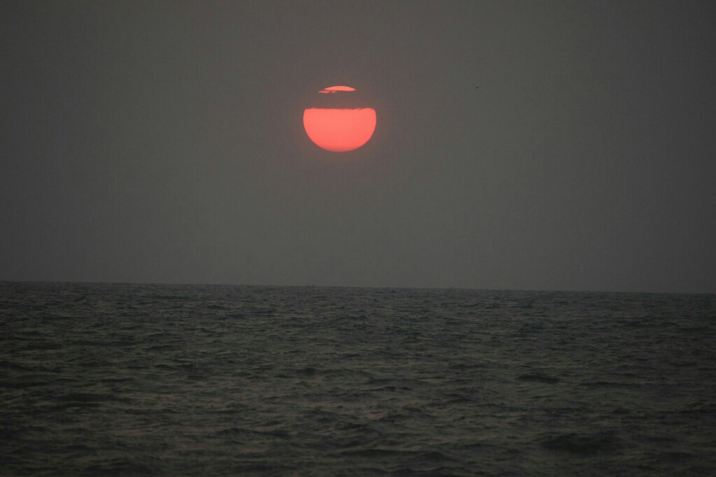הגענו לכניסה לחוף הציבורי, ברחוב צר שהיה מלא בטוקטוקים, מכוניות והולכי רגל, וסדרנים שגבו תשלום מהמכוניות ברחוב עצמו. החוף היה גדול ורחב מאוד, והמוני אנשים נראו בו, וכן דוכני חטיפים מטוגנים ומתוקים בכל מקום. האווירה הייתה מאוד שמחה, כיאה ליום ראשון בעיר שכמעט כולה קתולית. צעקות והתגודדות במקום אחד משכו את תשומת לבנו. הייתה שם תחרות משיכת חבל של בחורים נגד בחורות, שאמנם היו חסונות וגדולות מאוד, אך הפסידו בבושת פנים, וזכו לעונש הולם מהבחורים שזרקו עליהם חול.