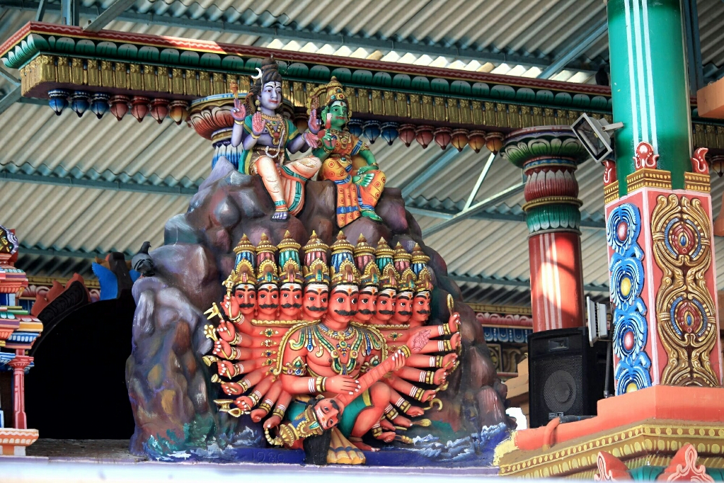 המקדש באמת היה מופלא. מחוץ למקדש היה פסל ענק של שיווה בגובה של כעשרה מטרים עם כל הפרטים ובצבעים מיוחדים, קצת פסטליים ולא אדום ירוק לבן כמו במקדשים ההינדיים בהודו. הגג כולו מעוטר בפסלים הצבעוניים היפים בסגנון דרום הודו, וכיוון שהמקדש לא היה גבוה, אפשר היה לראות כל פרט בקלות ולהתמוגג מעושר הצבעים ופרטי הפרטים הקטנים. במקדש היה טקס בליווי תוף, ואנשים באו עם מנחות וישבו בריכוז כשכפות ידיהם צמודות. גם בתוך המקדש ראינו את הפסלים והציורים היפים, אבל שם אסור היה לצלם ותצטרכו להאמין שזה היה לא פחות יפה ממה שאפי צילם בחוץ.
