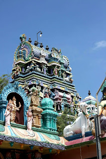 הנהג, טמילי שמשפחתו נמצאת במטלה, הוביל אותנו לעוד מקדשים יפים מאוד, כולם פעילים ובכולם היו אנשים שהדליקו קטורת ונתנו מנחות, ואחד, שהצבעים שלו דהו והוא נראה אפור, היה מוקף בפיגומים לקראת צביעה בחוץ ובפנים.