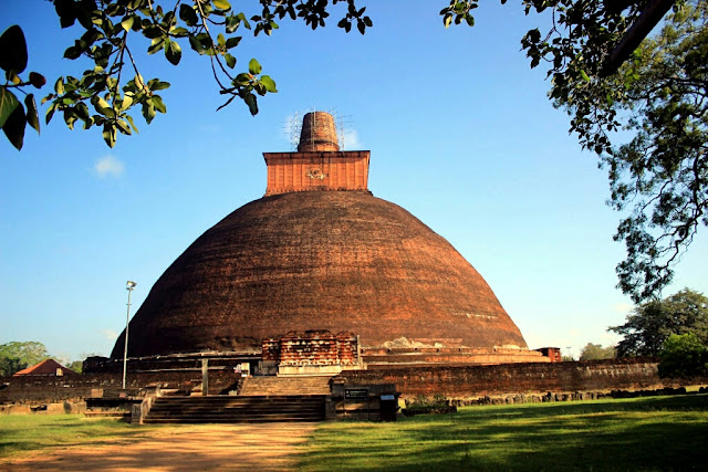 קנינו כרטיס לכל המקדשים והמוזיאונים ויצאנו לעבר הסטופה העתיקה החומה, שנחשבת לגדולה בעולם, ונמצאת בלב מתחם עצום ובו המון שרידי מנזרים ודרכי אבנים הסלולות ביניהם, שאיכסנו כעשרת אלפים נזירים בתקופת השיא של המלכות הבודהיסטית בסרילנקה. קשה לתאר את הגודל של המתחם והסטופה שסובבנו יחפים כי היא נחשבת מקדש פעיל, ואכן ראינו שם משפחה עומדת ומתפללת בשקט. גם כשעלינו על הטוקטוק והמשכנו לנסוע ראינו שהמתחם עוד נמשך ונמשך עם המבנים ההרוסים שנשארו מהם רק הבסיסים.