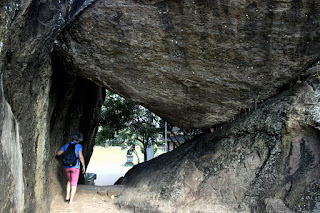 ואז ביקשנו מהנהג לחזור ליד המקום בו היינו יום קודם, למקדש הבנוי על הסלע הענק, כי מולו, קצת הלאה בכביש יש מערות בתוך סלעים שחיו בהן נזירים. מנהל המלון הנמרץ שאל אותנו כשחזרנו יום קודם אם היינו שם והמליץ לעשות זאת למחרת. זה היה באמת מרשים: הסלעים הענקיים יצרו מבנים מעניינים ואפשר היה להשקיף על כל הסביבה הרחוקה שבתוכה בצבצו המקדשים הגדולים של ״קרית המקדשים״, והמערות הגדולות היו קרירות וחבויות בלב הסלעים.