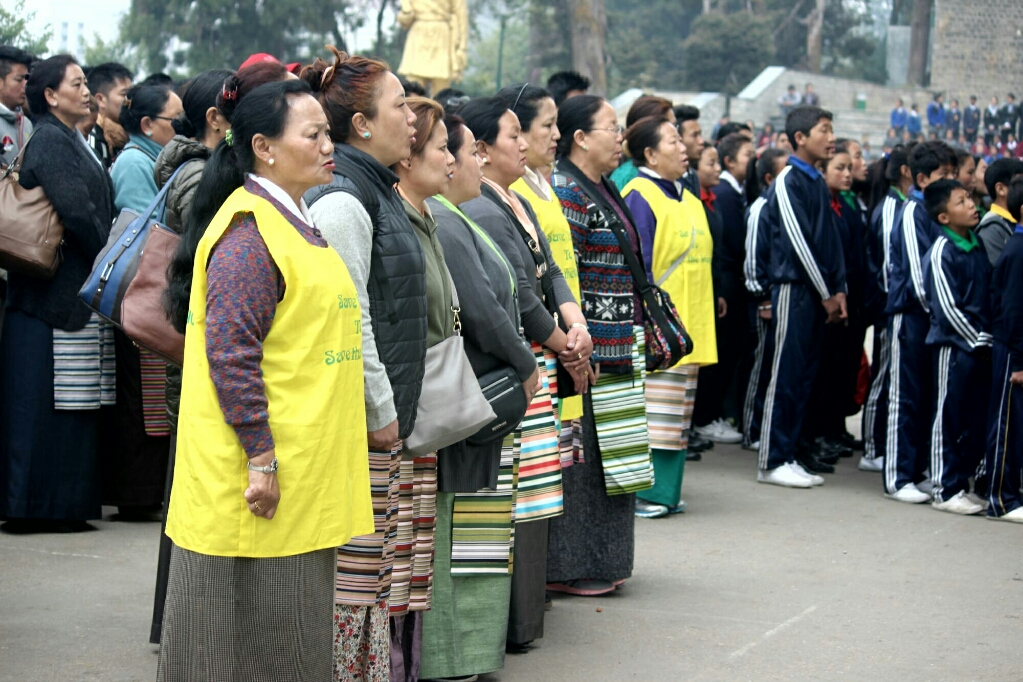 בכיכר העיר הייתה הפגנה שקטה של נשים טיבטיות בבגדים המסורתיים ועל הבמה עמדו הנשים המכובדות וקראו נאומים לכבוד יום ההתקוממות נגד סין ב 1959, שבעקבות כישלונה הדלאי לאמה עבד את טיבט עם קבוצה קטנה של נזירים ועוזרים. היום עצמו היה יום קודם, כשהגענו, והפסדנו את המצעד הגדול עם כל תלמידי בית הספר הטיבטי והנזירים עם הדגלים, והזקנים עם הכתובות על ווסט ים צהובים: free Tibet וכדומה. הנשים וכמה גברים שהצטרפו שרו בהתלהבות ועצמו את עיניהן והצמיד את כפות ידיהן, אך בסך הכל זו הייתה הפגנה קטנה והעוצמה שהרגשנו בביקור הקודם נראתה לנו פחות חזקה.