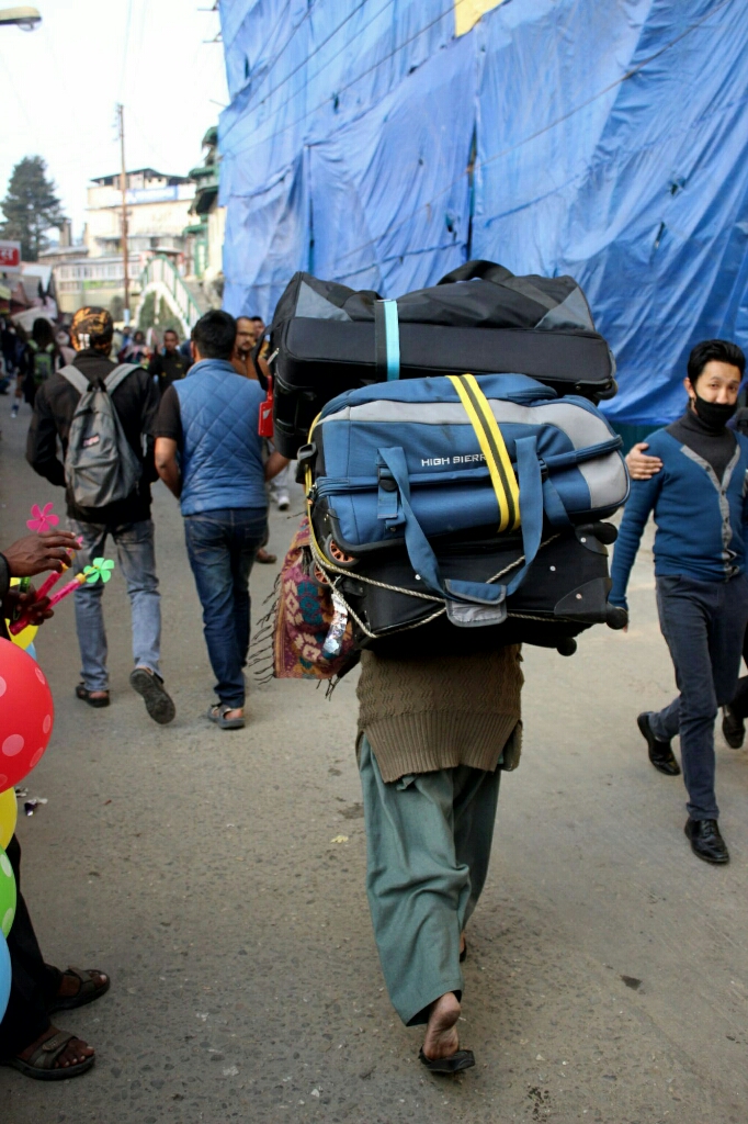הטיסה הזולה שהזמנו בעצמנו לבאגדוגרה (שדה התעופה בצפון מזרח הודו שממנו נוסעים לדארג׳ילניג) הייתה אכן זולה, אך התרשלנו ולא בדקנו את הגבלות המשקל, ורק בצ׳ק אין התברר שאנחנו בעודף משקל וזה עולה המון כסף. הדיילת הנחמדה נתנה לנו אפשרות להעביר דברים כבדים מהתיקים הגדולים לקטנים שעולים אתנו למטוס. הצלחנו להקטין את העודף לקילו לכל תיק והיא וויתרה לנו על התשלום. שדה התעופה ענק, וגם החלק של הטיסות המקומיות נמשך לאורך קילומטרים בהם סחבנו את התיקים הקטנים שהפכו עכשיו לכבדים…