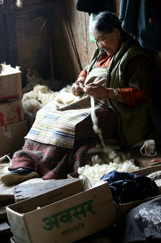 משם ירדנו על פי עצתו של נזיר צעיר בדרך עפר צרה שקיצרה לנו את הדרך למרכז הסיוע, שהיה אחד המקומות הראשונים בו ראינו את הטיבטים, והתרשמנו מהארגון העצמי שלהם והרצון שלהם לפרנס את עצמם תוך כדי שמירת המסורת והתרבות. אבל, מה גדול היה השינוי במקום הזה! רוב הסדנאות היו נעולות והמעטות שהיו פתוחות היו כמעט שוממות, ורק כמה זקנים וזקנות עסקו בתפירה וטוויית צמר, ואחת אפילו הייתה שקועה בטלפון החכם שלה כשנכנסנו לחדר…