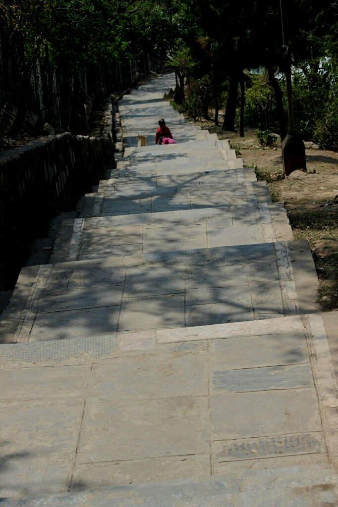 הדרך למקדש התפתלה בתחילה בין בתים ומקדשים ואחר כך בכביש רחב שסובב את הגבעה שבראשה מתנוסס המקדש. ככל שהתקרבנו למקדש גדל מספר החנויות המוכרות בעיקר מאלות, שרשרות תפילה בודהיסטיות, ועוד קישוטים וכלי קודש לפולחן וכמובן פרחים ומנחות למקדש. לא יאומן כמה חנויות כאלה, אחת ליד השניה, יש ברחוב הגדול המוליך למקדש. החלק התחתון של המתחם אינו מרשים, אבל יש בו ברכה לא נקייה עם פסל וכמה מבנים יפים וגינה שאפשר לשבת בה ולנוח.