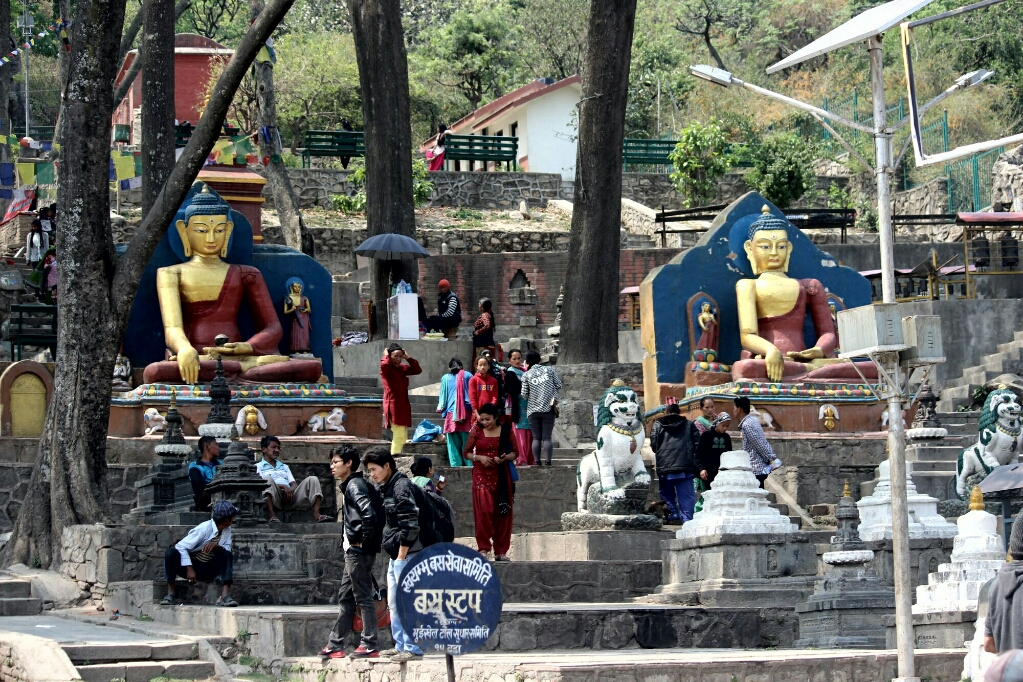 ביום הראשון הסתובבנו קצת ברובע התיירותי ואכלנו במסעדה המפנקת ביותר, והלכנו לישון מוקדם כי היינו עייפים מאוד אחרי יומיים כמעט בדרכים. למחרת קמנו מוקדם, השארנו את המסמכים הדרושים לקניית סים נפאלי לטלפון במלון והם ביצעו עבורנו את הרכישה. הלכנו למקדש בודהיסטי חשוב מאוד בנמצא קצת רחוק מהמלון, אבל התעקשנו ללכת ברגל כדי להרגיש את העיר.