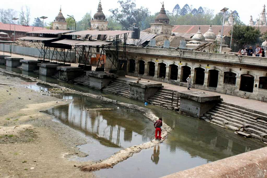 אבל בהמשך המראה היה די יפה, המתחם מתרומם מעל נחל, שהוא למעשה מי ביוב, שלידו נהגו לשרוף את המתים כמו בווראנסי, אבל עכשיו הממשלה אוסרת על כך והם בנו קרמטוריום מודרני ורק שם מותר לשרוף.