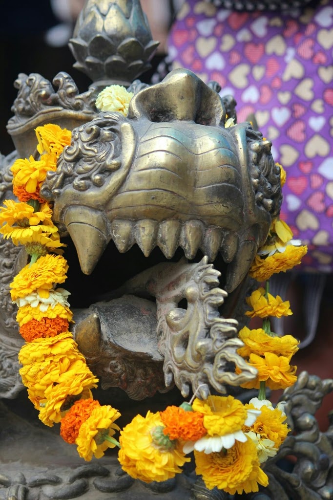 ארון הספרים היה נעול כי הבחור הנפאלי שפותח אותו לא היה שם ואחד החבדניקים המזוקנים המליץ לנו לבוא בערב כשהשבת תצא להחליף ספרים. שוחחנו עוד קצת עם הזוג הנחמד מכרמיאל ונפרדנו. עכשיו גילינו שיש חלקים גדולים מטאמל, שלא ראינו ואפילו חנות ספרים ענקית שאפשר לשוטט בה שעות. המשכנו לכיוון כיכר דורבר, והפעם נכנסנו בדרך אחרת ובאמת אפשר היה להיבלע בחברת המקומיים והתיירים מאסיה שלא שילמו כמונו, כי כמו בכל מקום עד עכשיו בנפאל, הכיכר הייתה מוקפת חנויות, מסעדות ואפילו מלונות, והקודש התערבב בחול.
