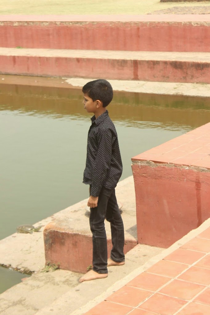 בבוקר קמנו מאוחר, אכלנו מאוחר ארוחה מערבית די פשוטה שלא בהתאם למחיר של החדר, ועלינו לשהות בחדר עד היציאה המואוחרת מהחדר באחת בצהריים. עדיין היו עוד כשש שעות להעביר עד יציאת האוטובוס וישבנו במין ספה לא הכי נוחה מול הקבלה, כי לא היה שם לובי ממשי וממש לא התחשק לנו לצאת לחום הנורא ולחפש מקום יותר טוב. ראיתי בעיתון הבוקר באנגלית שנדחף מתחת לדלת שלנו מוקדם בבוקר, שהחום הכבד בכל הודו ובמיוחד באזור בו היינו, גבה כבר מחיר כבד של מתים וחולים שהובהלו לבתי החולים, וזה חיזק את ההתנגדות לצאת כל מקום שאינו הכרחי.