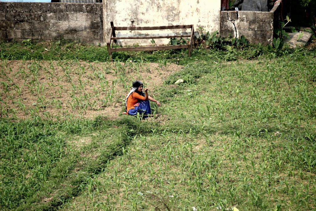 הייתה שם אישה צעירה שדיברה די טוב אנגלית והיא הסבירה שהן לוקחות זבל אורגני לגינה הגדולה שבecovillage, המלון שלה, שנמצא ממש ליד מעל הדרך. היא הסבירה שיש להם שיטות מיחזור וטיהור מים ולכל דבר נמצא שימוש, והזמינה אותנו לראות את המלון שלה. לפני שעלינו אתה סיפרה שעבדה עשרים שנה בפוקארה כמבשלת במסעדה, ולאחרונה חזרה לכפר עם בעלה, ופתחה את המלון שלה שהיא מאמינה שיעזור לכל התושבים. ישבה שם זקנה עם מעט מאוד שיניים שהיא בעלת הבופאלו שאת הזבל שלו לקחו. הצעירה דוברת האנגלית סיפרה שהזקנה היא האדם המבוגר ביותר בכפר, בת 95 ויש לה בן ובת שגרים גם הם בכפר. היא התאלמנה כשהייתה בהריון עם הבת ומאז לא נישאה כי זה משהו שמאוד לא מקובל בנפאל במיוחד בכפרים. הזקנה שמעה את הבופאלו נוער ורצתה לתת לו מים אך היא נפלה, וזה מאוד ציער אותה שהיא כבר לא יכולה לתפקד ולגדל את הבופאלו כמו שעשתה כל חייה. בכלל היא מרגישה שהחיים שלה ארוכים מדי ולא רוצה להמשיך לחיות כשהיא לא עצמאית ונעזרת בילדיה.