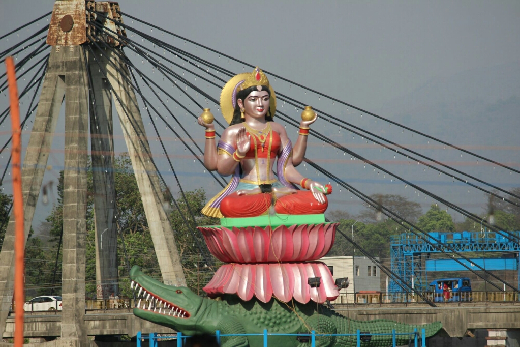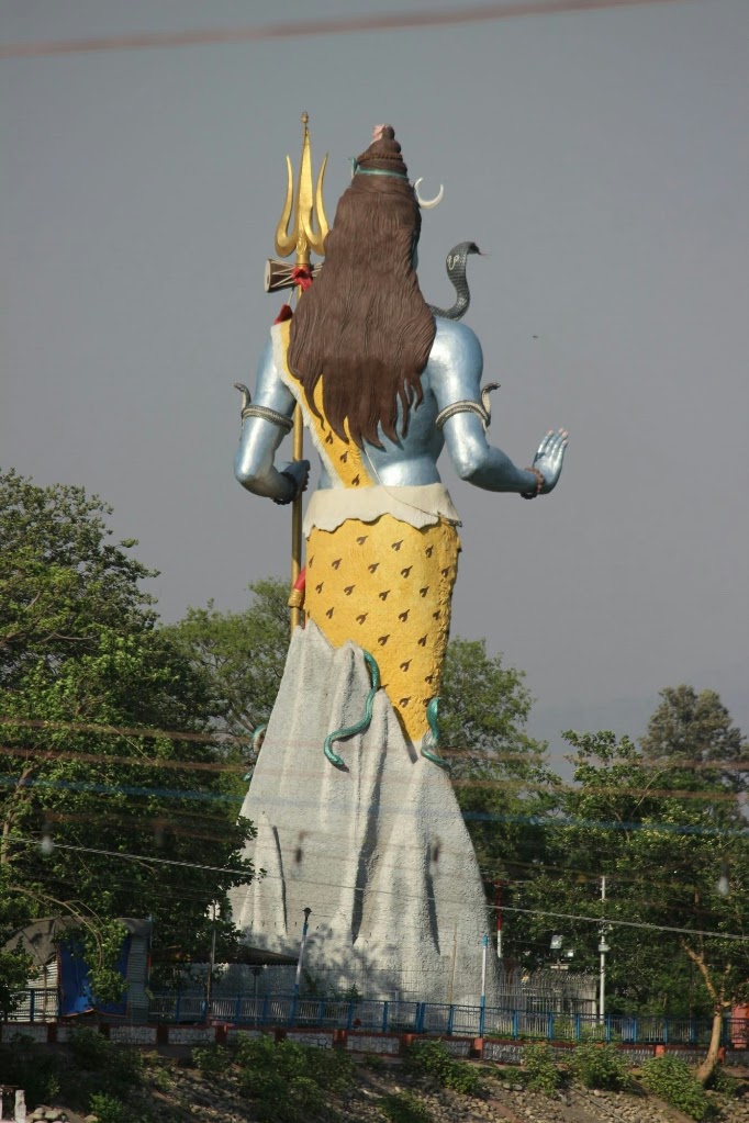עצרנו במגרש חניה ליד הפסל הענק של שיווה שמשקיף על הכביש הראשי ונראה מרחוק, להפתעתנו המגרש היה גדול ומסודר היטב, וקבענו עם הנהג שנגיע אחרי שהפוג׳ה תיגמר. הלכנו קצת על הגדה הסלולה והמסודרת ועברנו גשר שהביא אותנו למדרגות היורדות לנהר ליד המקדשים הגדולים שלידן ייערך הטקס.
