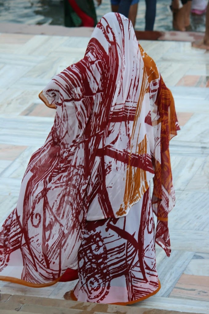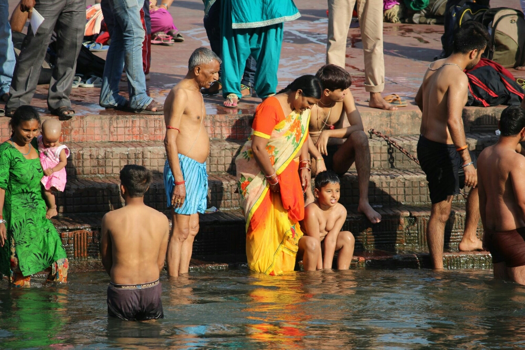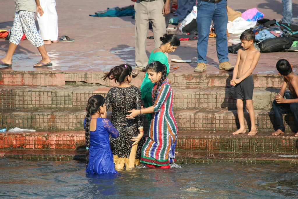 כמה בחורות נחמדות ממשפחה שהייתה לידינו דיברו אתנו, וסיפרו שהן מאיזה עיר באזור גוראפור כנראה, ואחרי הפוג׳ה ייסעו באוטובוס לילה לאמריצר ומשם לדלהי והביתה. מצא חן בעיני שלמרות שהם הינדים מסורתיים ובאו לרחוץ בנהר הגאנגא הקדוש ולהיות בפוג׳ה שלידו, הם נוסעים למקדש הזהב של הסיקים, וליד הנהר ראינו הרבה סיקים מגיעים עם משפחותיהם כעולי רגל אף על פי שזו אינה המסורת שלהם. זה משהו שמאפיין את הודו, כבוד הדדי בין הדתות, שרק המוסלמים אינם חלק ממנו ולעולם לא תמצאו מוסלמים אדוקים בתלבושת במקומות העלייה לרגל של ההינדים, הבודהיסטים או הסיקים, ולהיפך.
