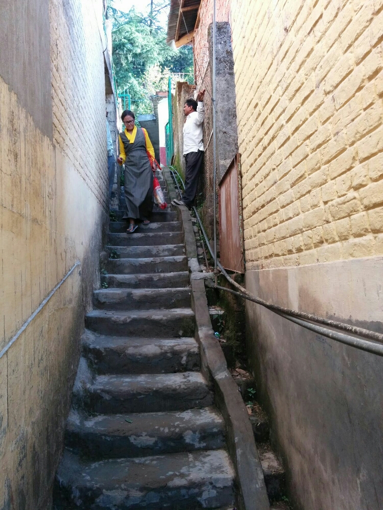 למרות ששום דבר דרמטי לא קורה, יש על מה לכתוב, והשלווה של חיינו במקלאוד משובצת באירועים קטנים ומעניינים. קודם כל ברצוני לתאר את הדרך לספריה בה אנחנו לומדים כל בוקר. הרחוב שלנו מתפתל בחדות למטה, בין מסעדות, מלונות וחדרים להשכיר, חנויות לתיירים (תיקים ׳טיבטיים׳ כובעים גרביים ונעלי תינוקות סרוגים שהטיבטיות סורגות בשקדנות כשהן מחכות ללקוחות) חנויות תכשיטים, סוכנויות נסיעות וכו׳.