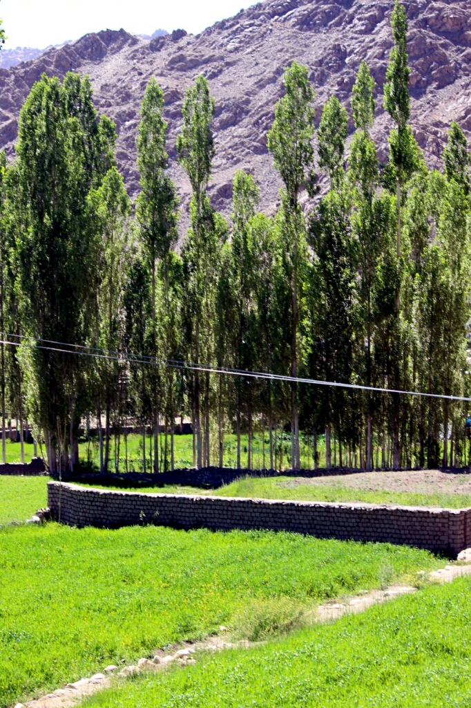 חיפשנו את דרך הקיצור אבל הסתבכנו והלכנו דרך שבילים צדדיים ליד בתים כפריים ושדות שעורה ופרחי חרדל, או סתם גינות ירק גדולות. מעלינו נראו ההרים הצבעוניים הקרובים יותר ומרחוק הפסגות המושלגות. ידענו שטעינו אבל היה כל כך נעים לטעות וללכת סתם לפי הכיוון המשוער. לצד השביל פכפוכי מים צלולים בתעלה לאורך כל הדרך, זה משהו שרואים בכל לאדאק, וגם בלאמאיורו ראינו תעלה כזאת בצד הכביש הראשי. בלאדאק האיכרים משקים את שדותיהם בתעלות שמימיהן מופנים לבתים בצורה מאורגנת וחלוקה שנעשית על ידי הקהילה. כך כשאתה הולך בלה ברחוב קטן יותר אתה רואה את התעלה והמים הנקיים ובלילה שומעים את פכפוך המים המרגיע בכל בית.