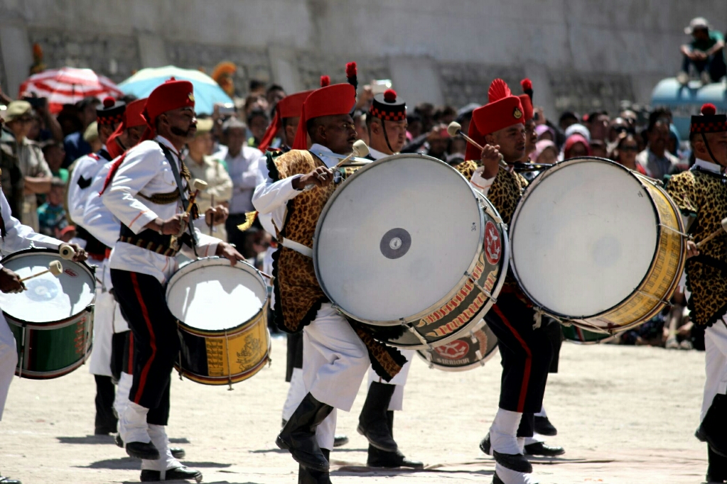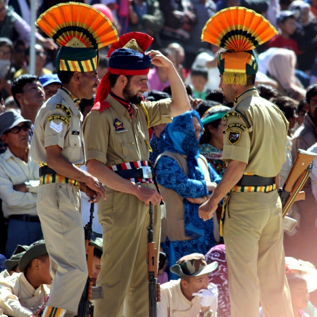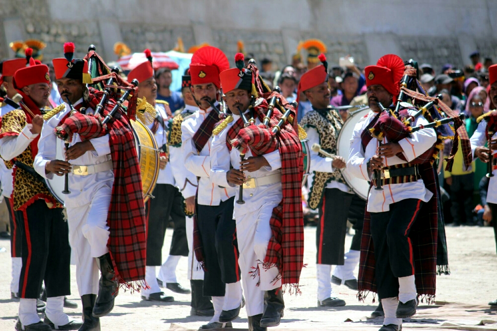 אחרי כל הריקודים הגיעה לרחבה תזמורת היחידה המקומית של לאדאק, Ladakh scouts, חלקם מנגנים בחמת חלילים ועל כתפיהם גלימה סקוטית משובצת, וחלקם מתופפים וכולם מתנדנדים מצד לצד לפי הקצב בדומה לתזמורות בתי הספר התיכוניים שכל תלמידיהם שחורים בארה״ב, אך בהרבה פחות עיכוסים וניענועים, בכל זאת חיילים ועוד הודיים…