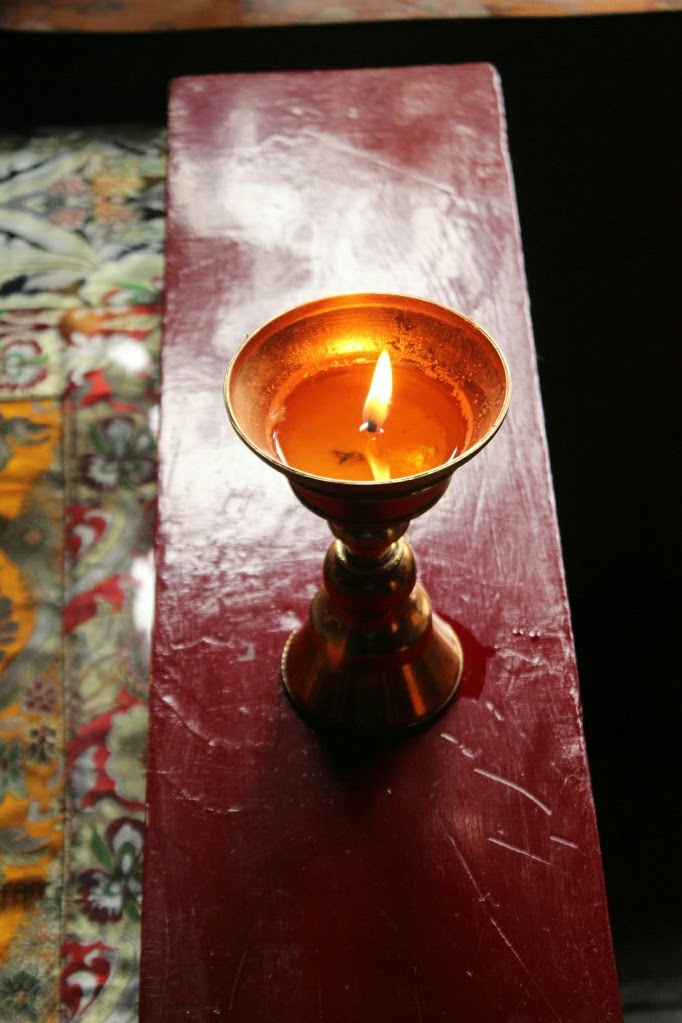 לבסוף החלטנו שאין למה לחכות כי הטפטוף נמשך אך לא היה חזק, ויצאנו לעבר המנזר העתיק מהמאה האחת עשרה, שהוא האטרקציה המרכזית בכפר, מלבד היותו נקודת יציאה לטרקים. העליה התלולה לא הייתה קשה והתפתלה בין הבתים ואחר בין סטופות עתיקות וחרבות, שעדיין אפשר לראות את עיטורי האבן העתיקים על חלקן. הגענו למקדש היפה והגדול, שהזכיר לנו את המקדשים בדהארמסלה ובסיקים והיה שמור היטב ומקושט בציורים הצבעוניים הטיפוסיים לטיבטים, למרות שזהו מקדש לאדאקי טיפוסי, והם אינם מגדירים את עצמם כטיבטים.