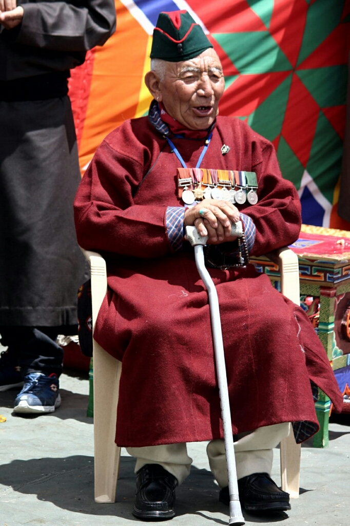 לי היה קשה לשמוע אותו כי הוא דיבר כשהדאלאי לאמה מדבר, ואחר כך הלאדאקי מתרגם ברמקול אז אני מסתפקת במה שאפי שהצליח לשמוע טוב יותר מסר לי. בתחילה דיבר על יוצאי הצבא שיזמו וביצעו את הקמת הפסל והמקדש, וגישר בין האיסור המוחלט בדהארמה לפגוע ביצור חי, ובין היותם של היוזמים אנשי צבא. הוא דיבר על כך שהשירות הצבאי נותן להם הזדמנות להתאמן בלהיות גמישים ולהיות חזקים וזה חשוב מאוד. גם העובדה שלמרות היותם אנשי צבא הודיים לא שכחו את המורשת ועכשיו הם פועלים למענה ולמען הקהילה היא חשובה ומעידה על התכונות הטובות שלהם. אחר כך דיבר על ארבע האמיתות של בודהה ועל הייחוד שלו כמי שלא ביקש מתלמידיו להאמין לו אלא לנסות ולבדוק. ואז על מה שנקרא: הסיבוב השני של גלגל הדהארמה, כלומר התפתחות הבודהיזם הצפוני, שהאידאל שלו הוא הבודיסהאטווה (מי שכמעט הגיע להארה ועצר כדי לעזור לאחרים להשתחרר מן הסבל ולהגיע להארה) ולא ההארה. הנאום הקצר הסתיים והחצוצרות והתופים פצחו בנגינה עליזה וכל התיירים ואפילו המקומיים הצטופפו לראות אותו מקרוב והוא יצא מוקף נכבדים ושומרי ראש, בצורה שונה לגמרי מהדרך בה יצא מהטיצ׳ינג, הרבה פחות מכובדת לדעתי.
