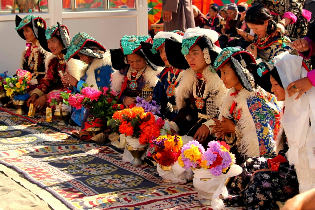 הכניסה לסטוק הייתה מקושטת בשערים ובדגלים והרבה שוטרים וחיילים נראו ליד הכביש ובשטחים הריקים סביבו. הכפר כולו היה מקושט בדגלים, שוטרים בכל פניה כיוונו את התנועה ואנחנו עצרנו ליד הפניה האחרונה לפני המנזר, ונפרדנו מהנהג. אנשים זרמו בכיוון המקדש והפסל ועברו דרך המנזר, שם עמדו חיילים וחיילות ובדקו את הנכנסים ואת תיקיהם. כולם היו לבושים בתלבושת המסורתית, הגברים במין שמלה שחורה מבד עבה עם חגורה צבעונית, והנשים עם שמלה שחורה וחגורה צבעונית גם הן, על ראשן חבשו כובע צבעוני גבוה. הן היו עטויות בשאל צבעוני עם חוטי זהב המשתלשלים ממנו ובידיהם החזיקו פרחים מהגינות או פרחי פלסטיק מפוארים. (כאן המקום לספר על המנהג המוזר של הטיבטים והלאדאקים לקשט את בתיהם ואת הכיתות והמקדשים בפרחי פלסטיק ענקיים, דבר שבלאדאק נראה עוד יותר מוזר מפני שעכשיו הכל פורח ויש פה פרחים ענקיים ומדהימים ביופים.)