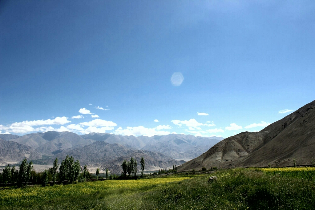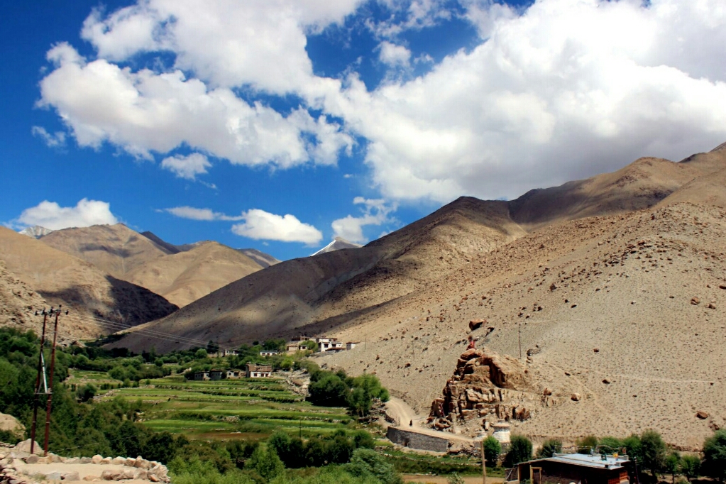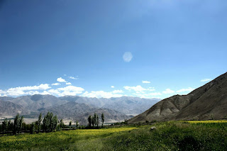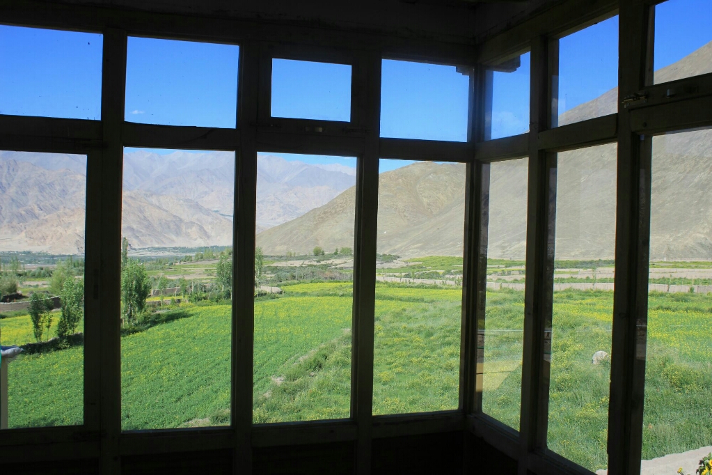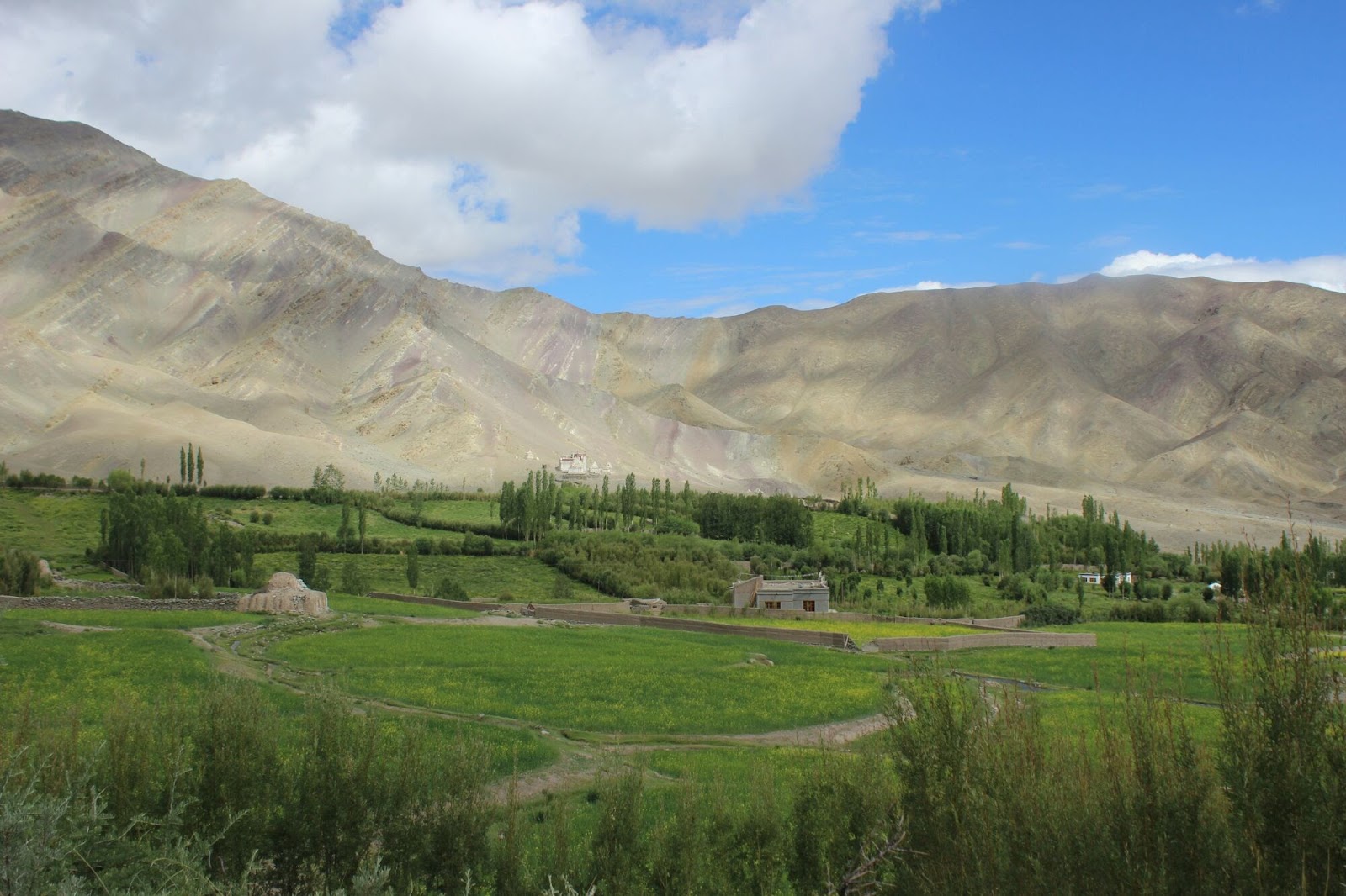 אחר צהריים אחד הלכנו ברגל בכפר ועלינו למקדש הגדול והחדש, שלידו הוקם פסל בודהה מוזהב גדול שבקרוב ייחנך על ידי הדאלאי לאמה. המקדש הגדול והחדש היה פחות מרשים מההליכה ברחובות הכפר, ולפעמים יותר נכון לומר: משעולי הכפר הצרים בין חומות אבני חימר גבוהות וצמוד לתעלת המים הצלולים. רוב הבתים הכפר בנויים בסגנון הלאדאקי המסורתי, בניין מסוייד בלבן בדרך כלל בעל שתי קומות, עם חלונות עץ רבים צבועים באדום כהה, ולידו גינת ירק ואחריה שדות חרדל ואלפלפה מגודרים גם כן בגדרות חימר גסות. אבל כמה בתים נבנו כבר בסגנון מודרני, יותר נכון בסגנון שמזכיר את בתי הפאר בסרטי בוליווד, ואין לידם שדות או גינה. יש גסטהאוז אחד והומסטאיי אחד והרחובות מתפתלים ועולים במדרון לעבר המנזר שמעליו מתנוסס פסל הבודהה והמקדש. הכפר באמת מדהים ביופיו: בתים ולידם עצים גדולים וגינות ירוקות, ושקט מופלא שקשה לתאר אותו.