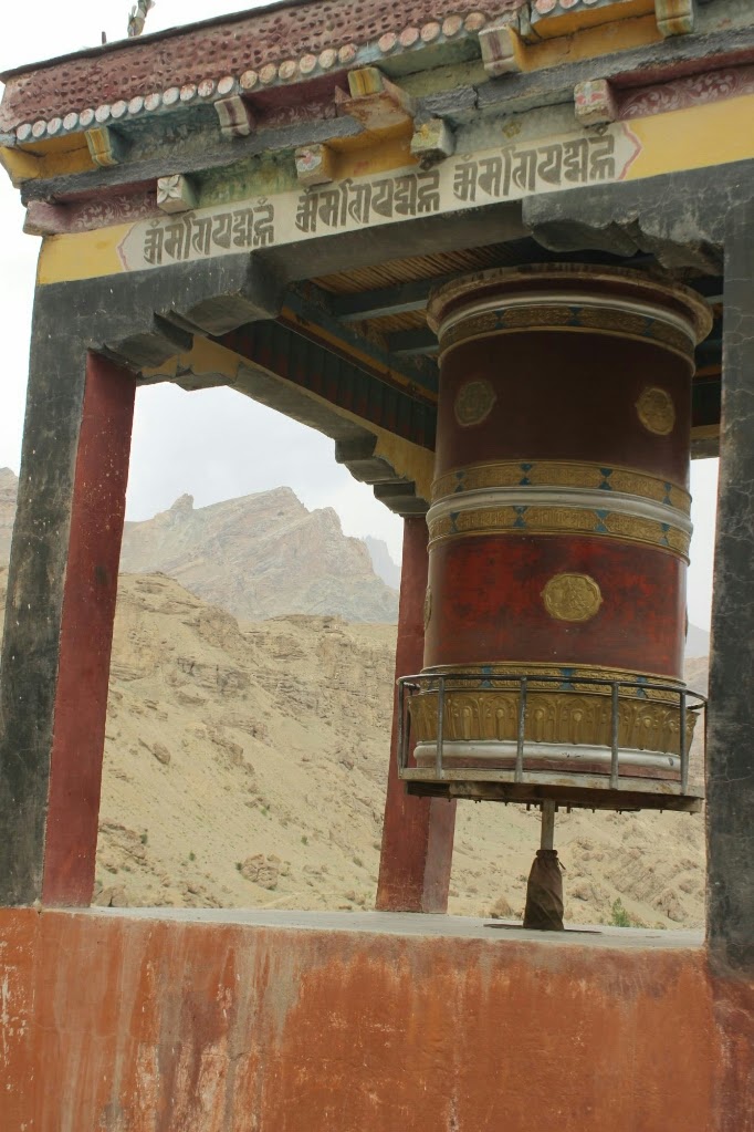 כעבור כרבע שעה הנהג עצר בכפר קטן, והראה לנו על מסעדה, ובעצמו התיישב לכרסם צ׳פאטי וירקות, ומיד הלך למכונית לישון קצת. אנחנו כבר הרגשנו שהוא עייף מאוד ושמחנו שהוא הולך לישון, מה גם שהשעה עדיין הייתה שעת בוקר ולא מיהרנו לשום מקום. אכלנו ושתינו ושבענו וראינו מול המסעדה סלע ענק שבחזיתו מפוסל בודהה ענק ולידו מקדש קטן. אחרי האוכל ירדנו לשם וראינו מקרוב את הסלע והפסל ואת המקדש הטיבטי הנחמד והצבעוני, ממש צמוד לסלע הגדול ולידו סטופה גדולה עם גלגל תפילות צבעוני.צהרגשתי שאני בבית, עם הבודהיזם הטיבטי הכל כך מוכר ואהוב, והאיש במסעדה הסביר לנו שהכפר שלו נמצא בדיוק על הגבול בין המקומות שבהם מברכים בסאלם עלייכום, כלומר בהם גרים מוסלמים ומדברים באורדו, ובין המקומות בהם מברכים בז׳ולאיי, שהוא שלום, ברוכים הבאים, תודה, בבקשה, וכל מה שתרצו לומר באהבה ושימחה בלאדאקית, כמו שאנשיה נוהגים בדרך כלל.